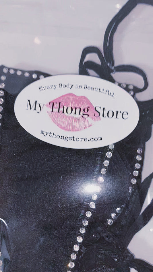 Black Bikini Bling Bling! Rave Rhinestone sexy dancer thong bikinis * Rave style whale tail back *