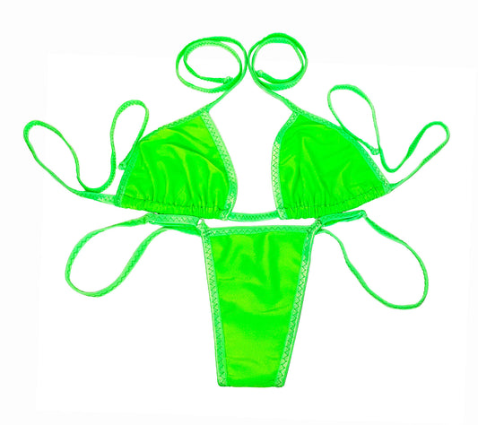GLOWS in black light! Sexy adjustable strap thong bikini - Neon Green